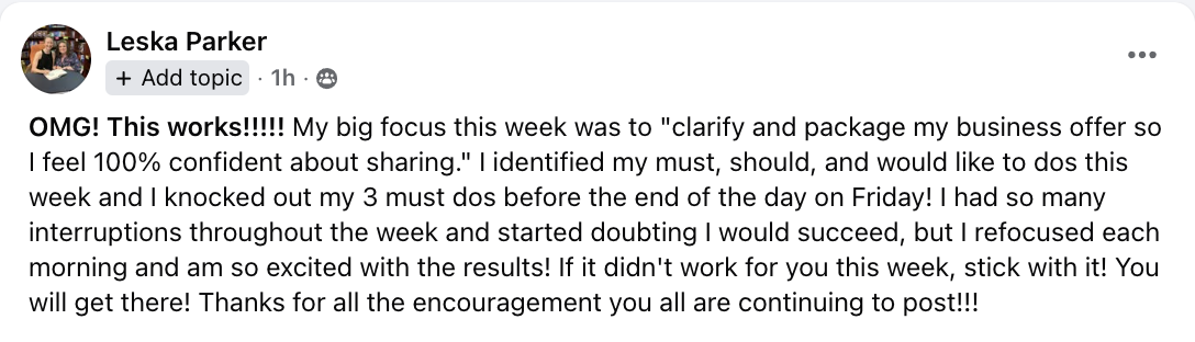 Here’s the next step you should take to get you closer to the life and business you want…